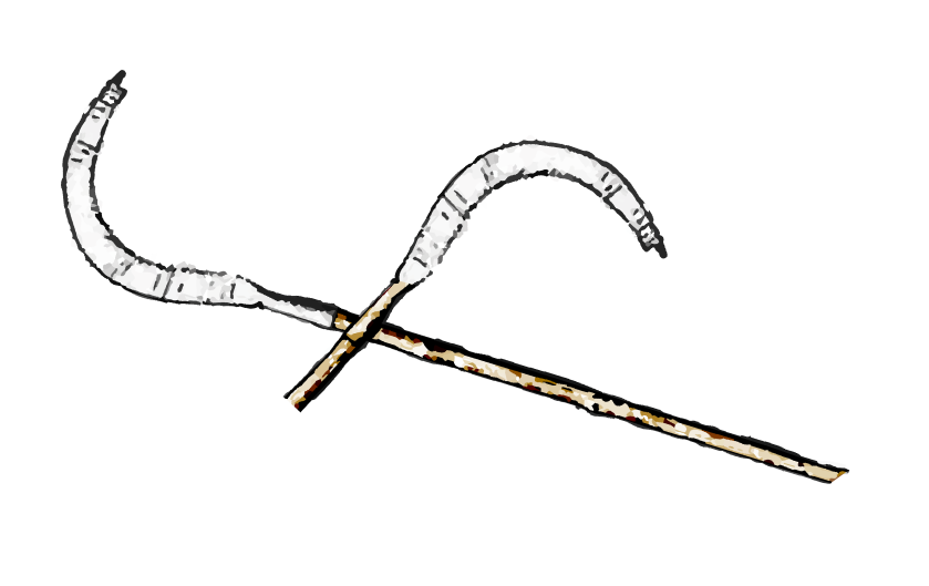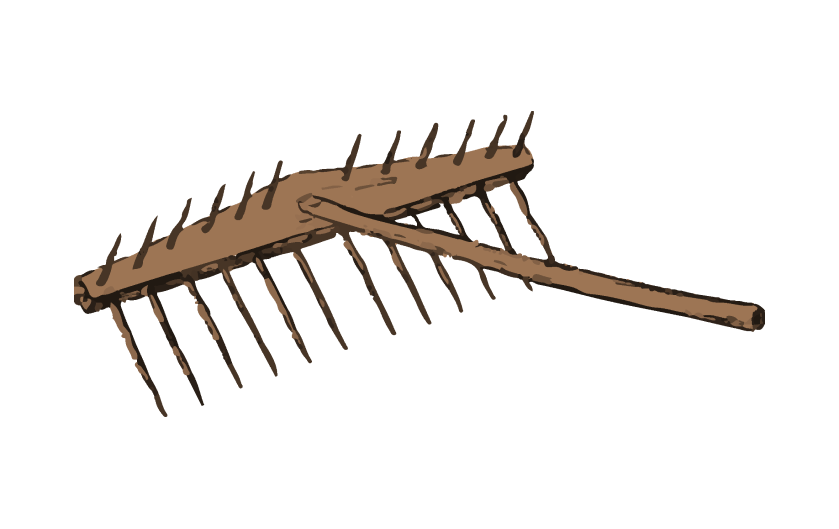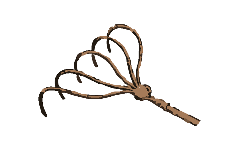 Outro tipo de utensílio usado de dentro de embarcações é uma espécie de rastilha, grande e forte, com todos os dentes de ferro, e com o cabo comprido e delgado (para cima de 9 m de comp.). … Na Amorosa e Castelo de Neiva, o utensílio que desempenha o papel da ganchorra é o croque (Des. 5). É formado por 5 ou 6 dentes de ferro, fortes e recurvados, saindo duma patilha ligada ao alvado em que entra o cabo, que é comprido e igual ao das ganchorras. Os croques pequenos, de 5 dentes, pesando uns 5 kg, trabalham nos fundos próximos da praia, entre os penedos; os de 6 dentes, com o peso superior a 8 kg, são para fundos mais vastos, mais para o largo. O croque usa-se tanto nos barcos como nas jangadas …